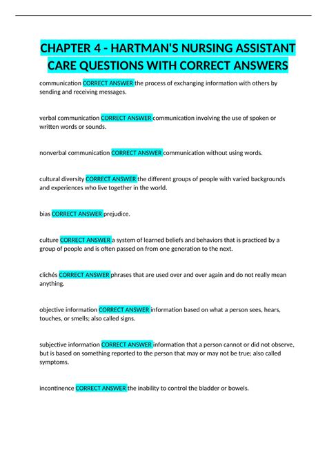 Read Hartmans nursing assistant care 3rd edition answer Doc